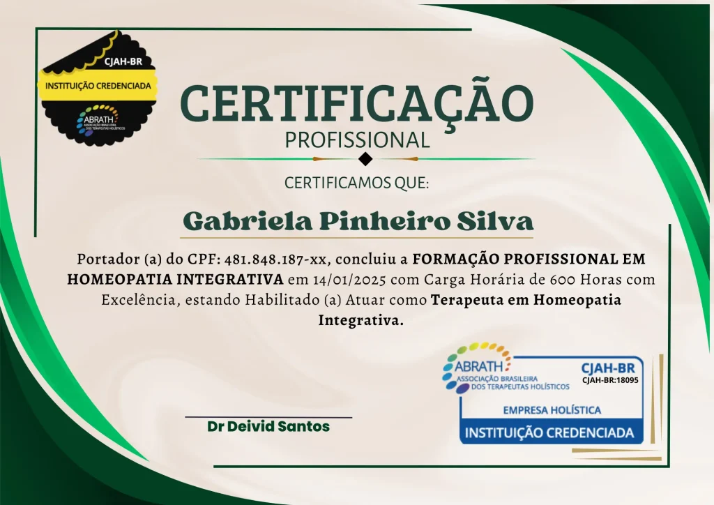 Sim! O nosso certificado é reconhecido pela ABRATH (Associação Brasileira dos Terapeutas Holísticos) permitindo que você atue legalmente na Profissão, realizando atendimentos e indicando os remédios homeopáticos. O Aluno certificado poderá retirar sua carteira Profissional (CRT – Conselho Regional de Terapia).
